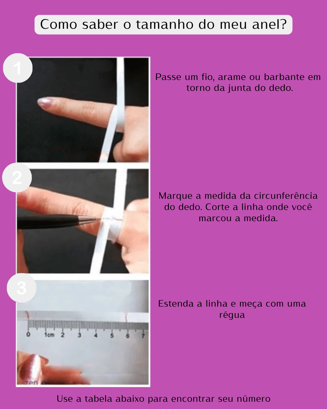 Não sabe o tamanho do seu anel? Fica tranquila! Preparamos um guia para você descobrir de uma maneira muito fácil e sem precisar sair de casa!